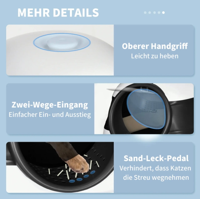 ✔ Ingang met rooster om uitloop van kattenbakvulling te beperken
