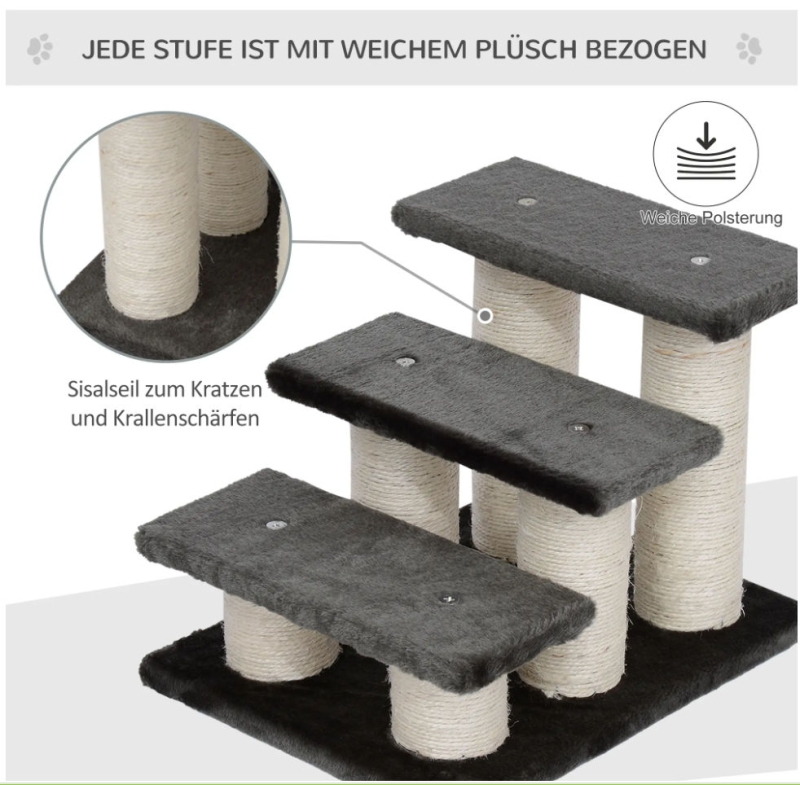 Groot trapparadijs voor uw huisdieren! Niet alleen om te ravotten. Deze stabiele 3-traps trap is een absolute hulp voor dieren zoals katten, puppy's en oudere honden. Zo kunnen uw dieren gemakkelijker op en van de bank, bank of bed stappen. Tegelijkertijd beschermt de praktische trap het bewegingsapparaat van uw favoriet. Met name zieke of kleine honden en katten worden optimaal ondersteund tijdens het opstijgen en dalen.