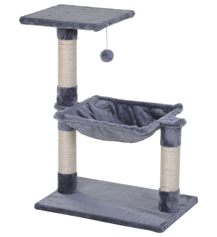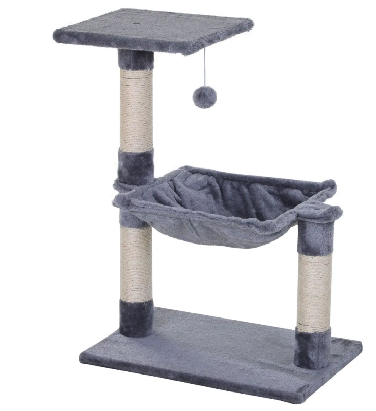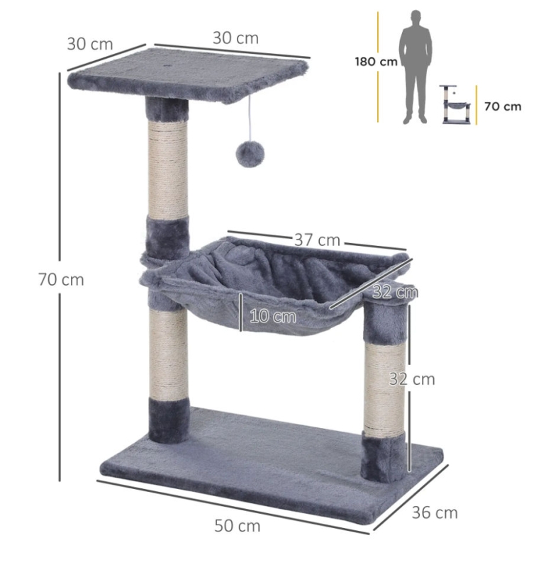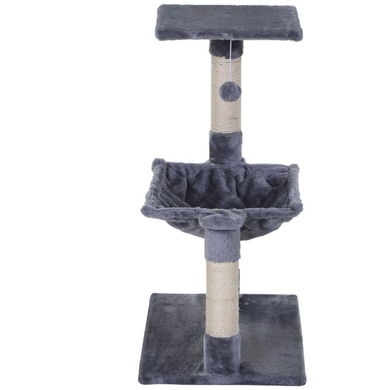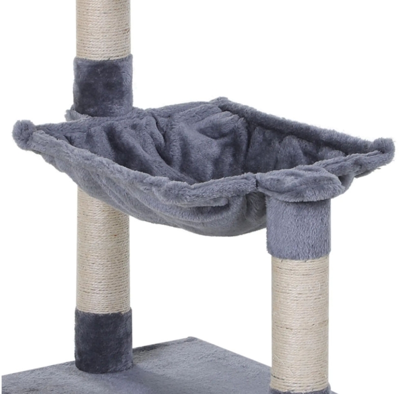 Waarom zou je kat genoegen nemen met de vensterbank, als er een complete speeltuin met loungeplek voor hem klaarstaat? Deze krabpaal biedt twee verhoogde platforms voor overzicht, een hangmat om in weg te dromen en stevige sisalpalen voor het noodzakelijke krabwerk. Zo heeft je kat zijn eigen clubhuis, en jouw meubels blijven ongedeerd.