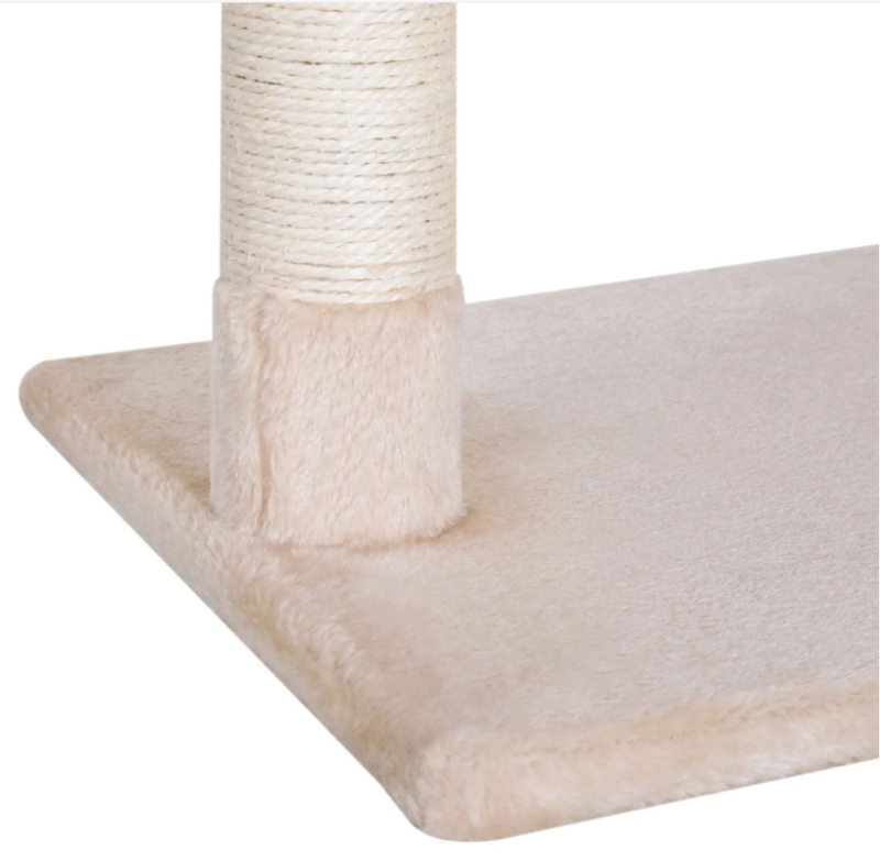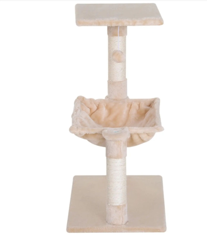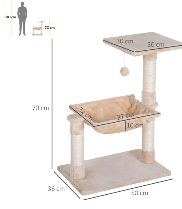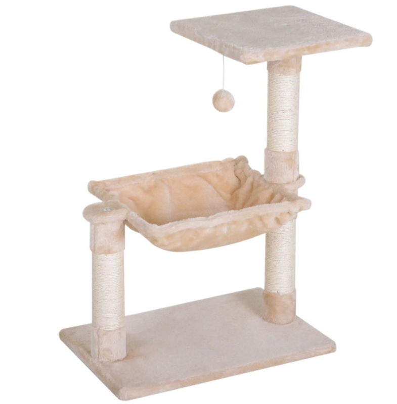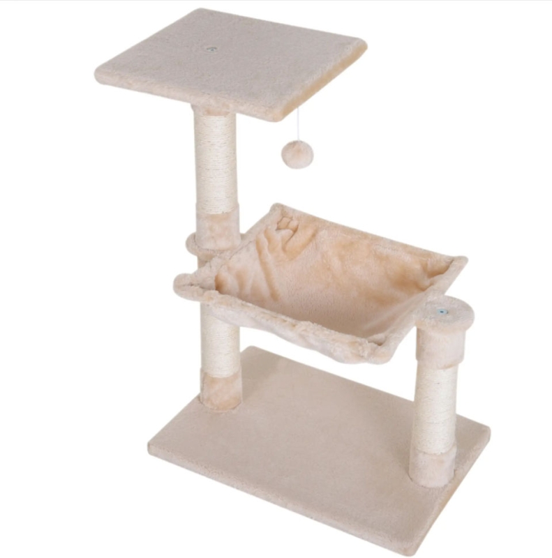 Waarom zou je kat genoegen nemen met de vensterbank als er een complete speeltuin met loungeplek klaarstaat? Deze krabpaal biedt twee verhoogde platforms voor overzicht, een hangmat om heerlijk in weg te dromen en stevige sisalpalen voor het noodzakelijke krabwerk. Zo heeft je kat zijn eigen clubhuis, en jouw meubels blijven ongedeerd.