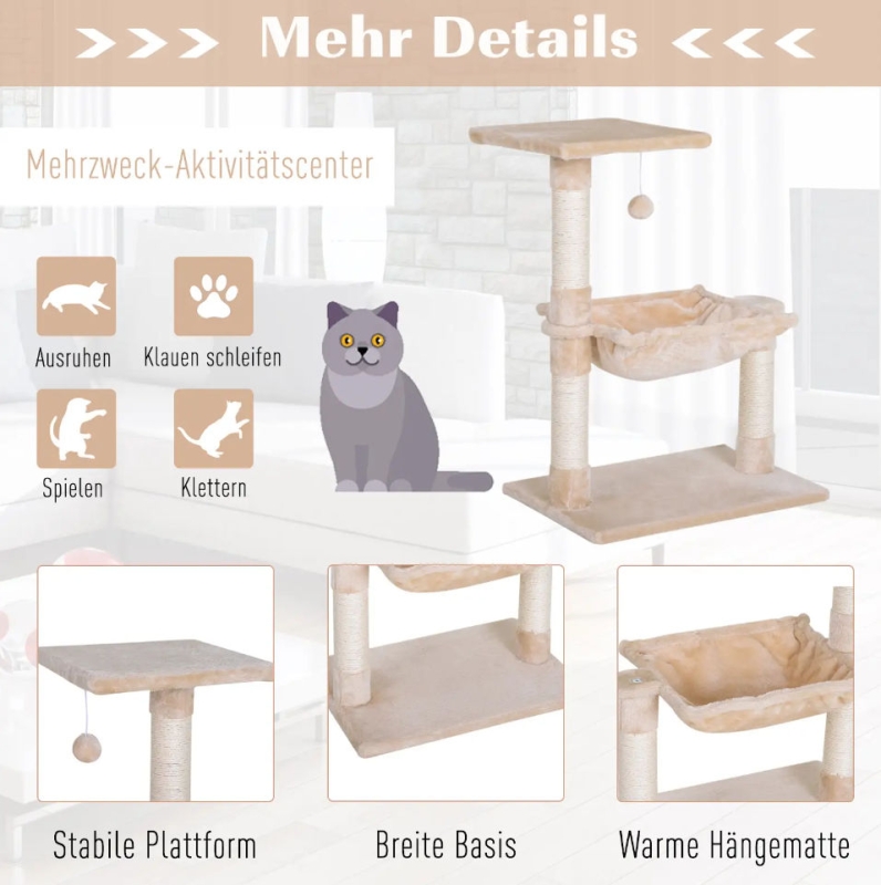 ✔ Drie sisalpalen om de natuurlijke krabbehoefte te vervullen