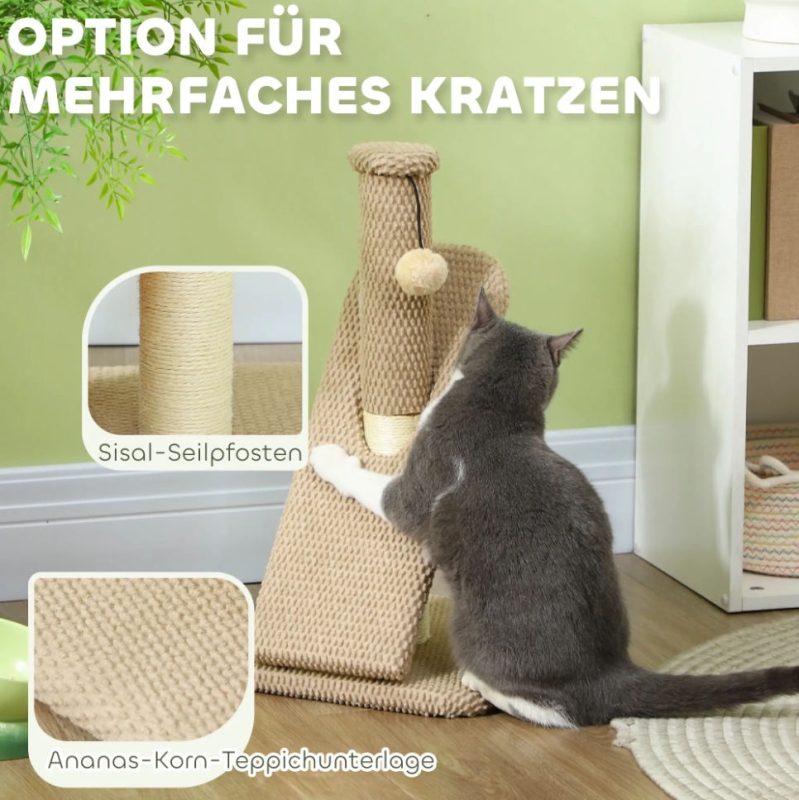 Waarom genoegen nemen met één soort krabvlak als je kat meerdere opties kan hebben? Deze krabpaal combineert sisal en een tapijt met noppen, zodat je kat zijn klauwen kan onderhouden én nieuwe texturen kan ontdekken. Met de extra speelbal blijft hij bovendien urenlang bezig – en jouw meubels blijven ongedeerd.