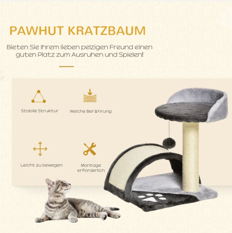 Waarom genoegen nemen met een kartonnen doos als je ook een kattensuite kunt hebben? Deze PawHut krabpaal combineert comfort, entertainment en bescherming voor je meubels. Met zachte pluche bekleding, natuurlijke sisalpalen en een ingebouwde kattengrot krijgt je kat een plek waar hij kan krabben, spelen én koninklijk uitrusten.