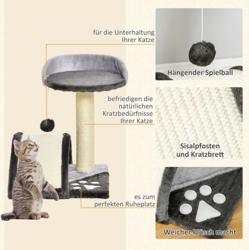 ✔ Materiaal: klasse E1 spaanplaat, pluche en sisal